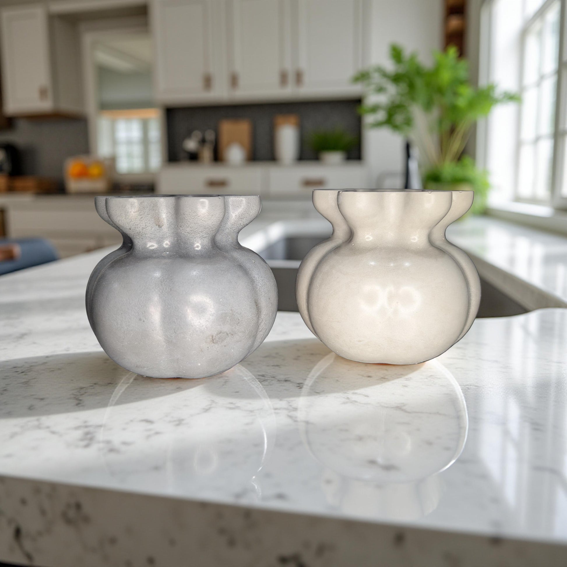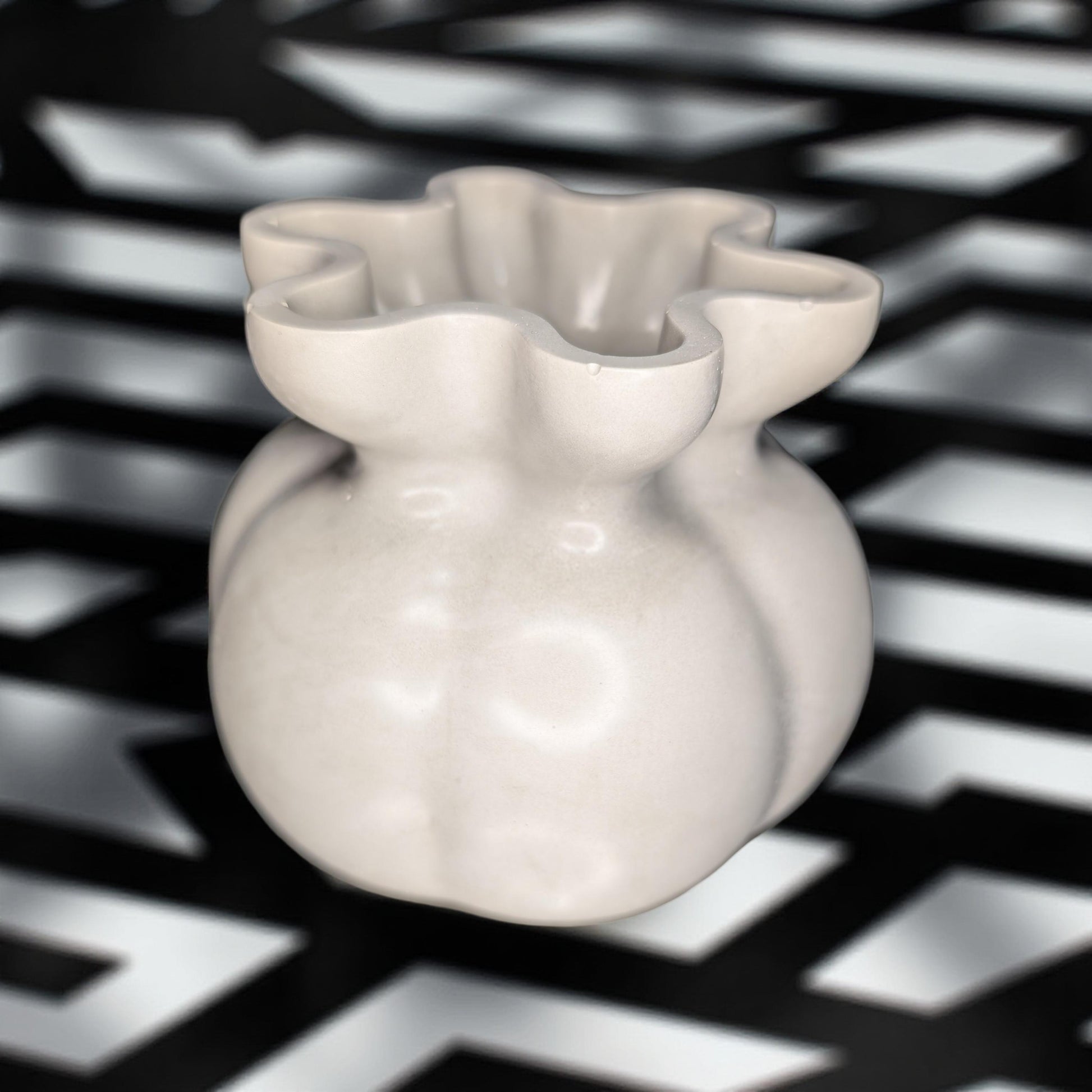 Concrete Bag Vase | Modern 'Bag-Like' Bud Vase with Fluted Rim | Minimalist Shelf Decor | Handcrafted in Grey or Natural Concrete