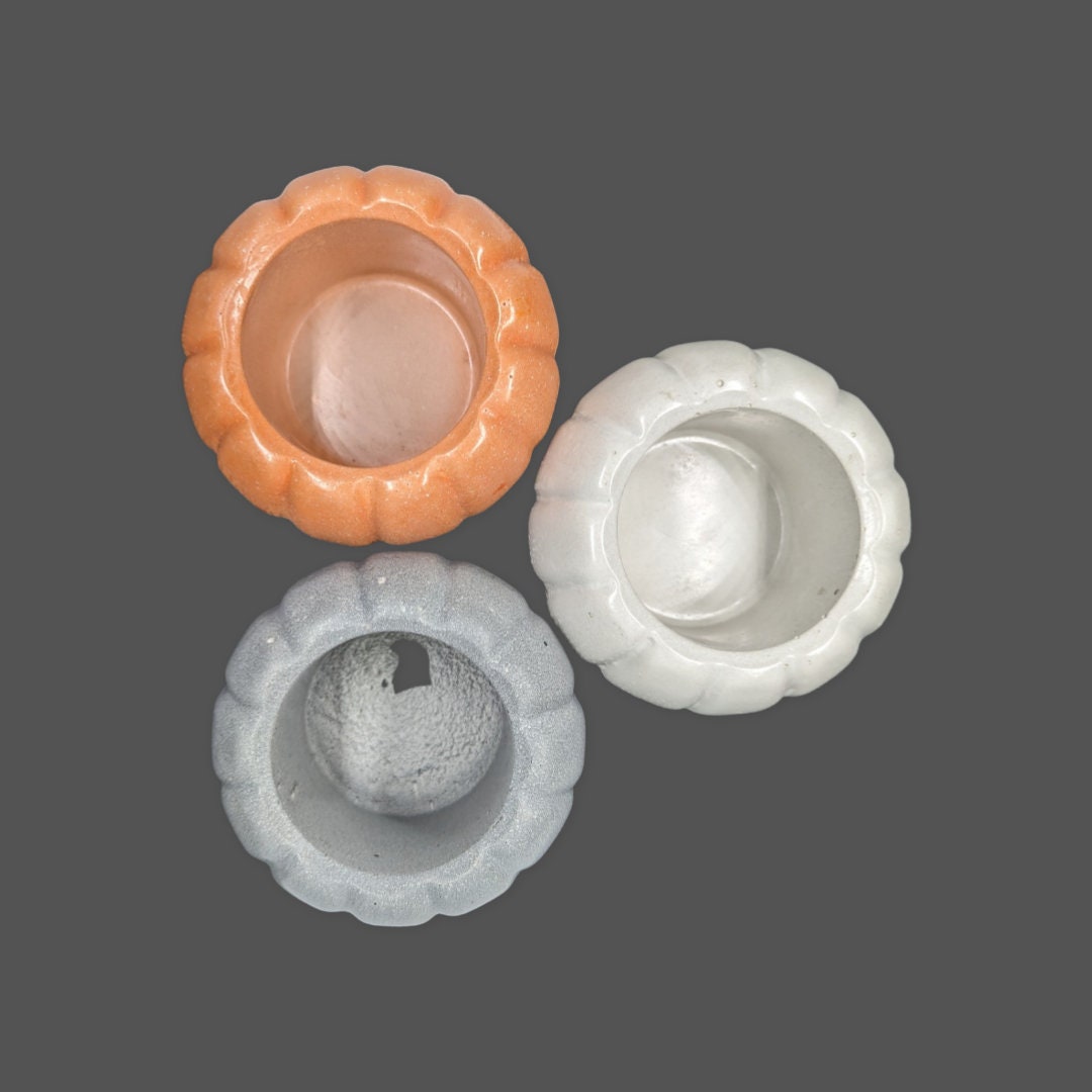 Introducing our exquisite Concrete Pumpkin Jar, a fusion of functional artistry and autumn-inspired design. This meticulously crafted jar seamlessly combines the rustic charm of a pumpkin with the modern allure of concrete, creating a versatile piece that adds both beauty and utility to your space.