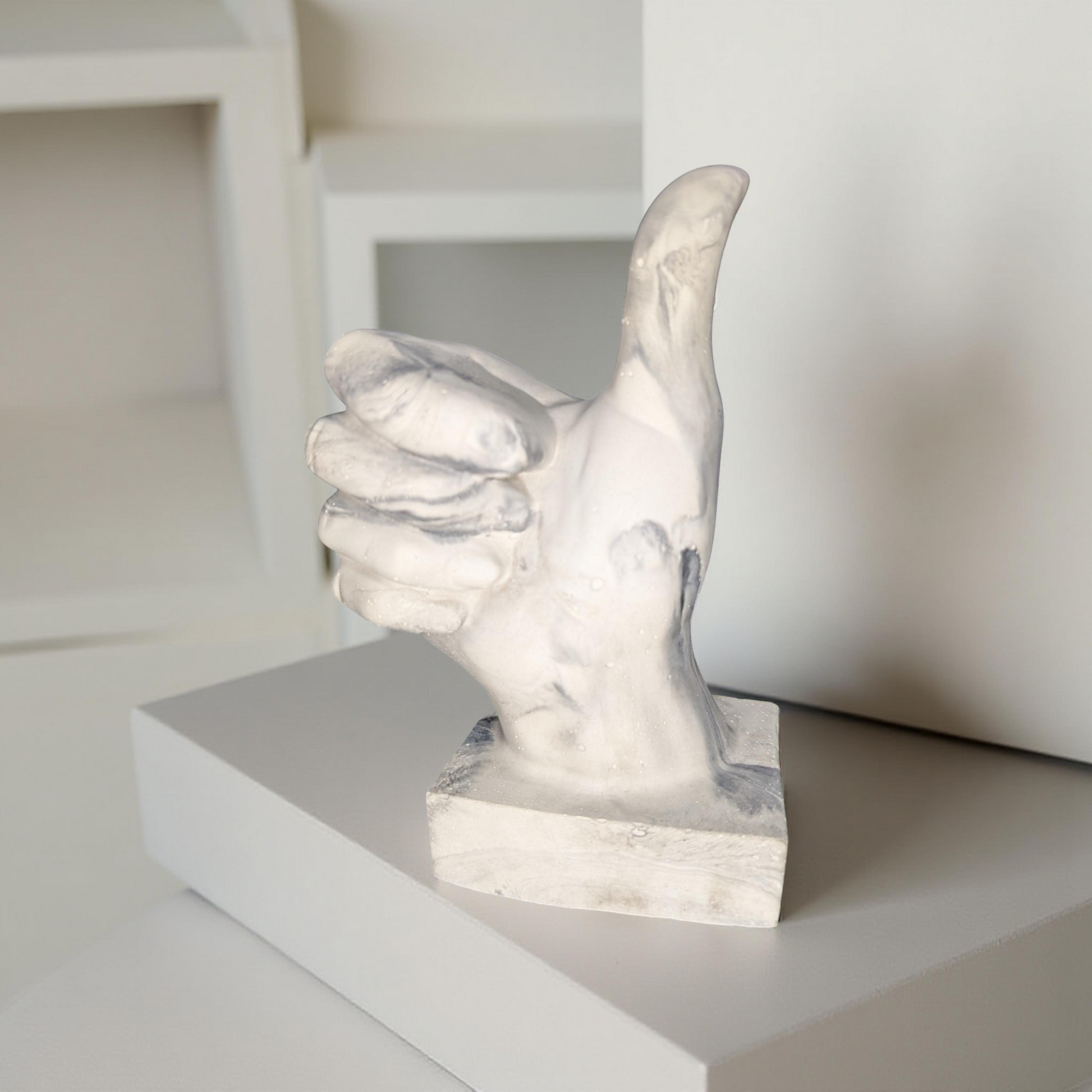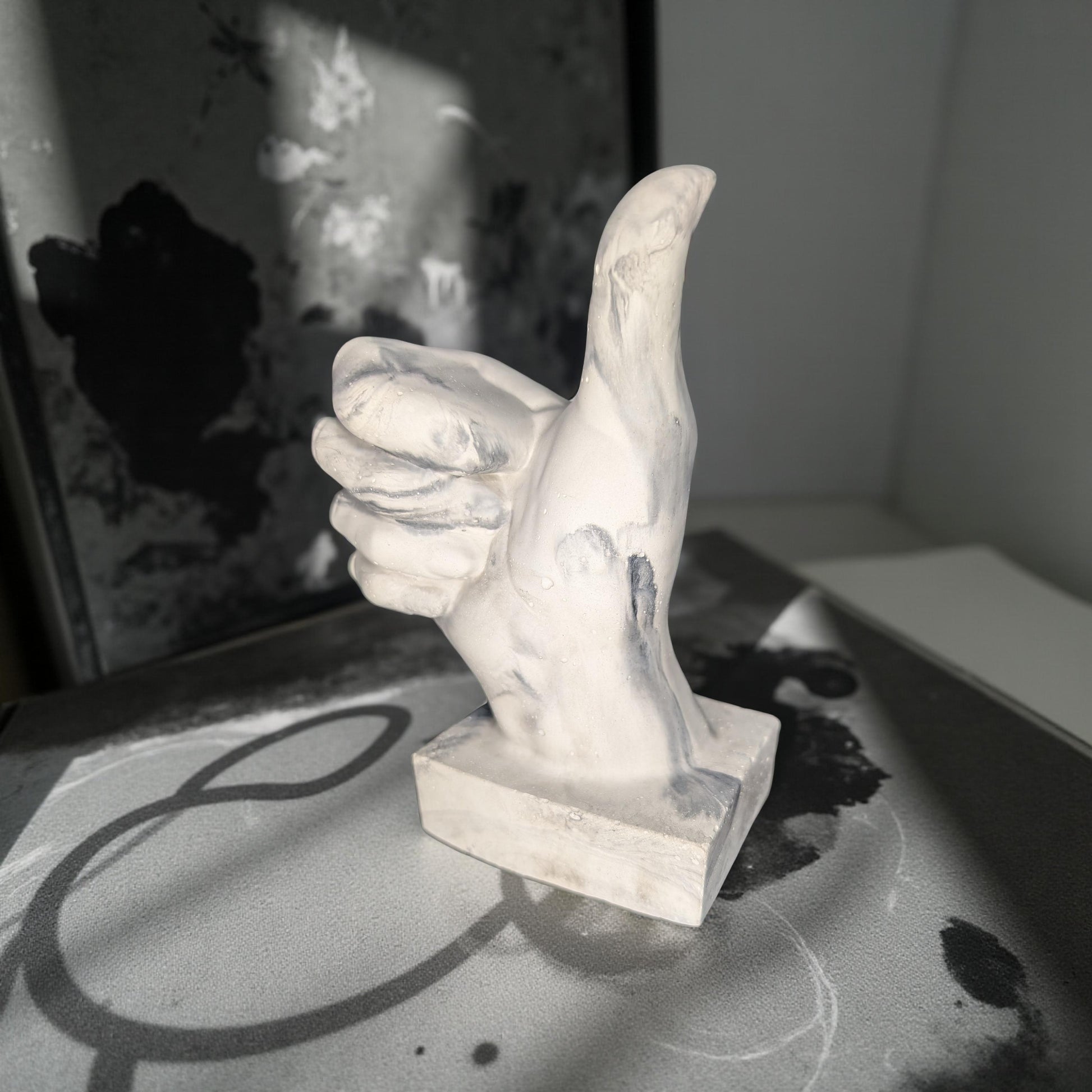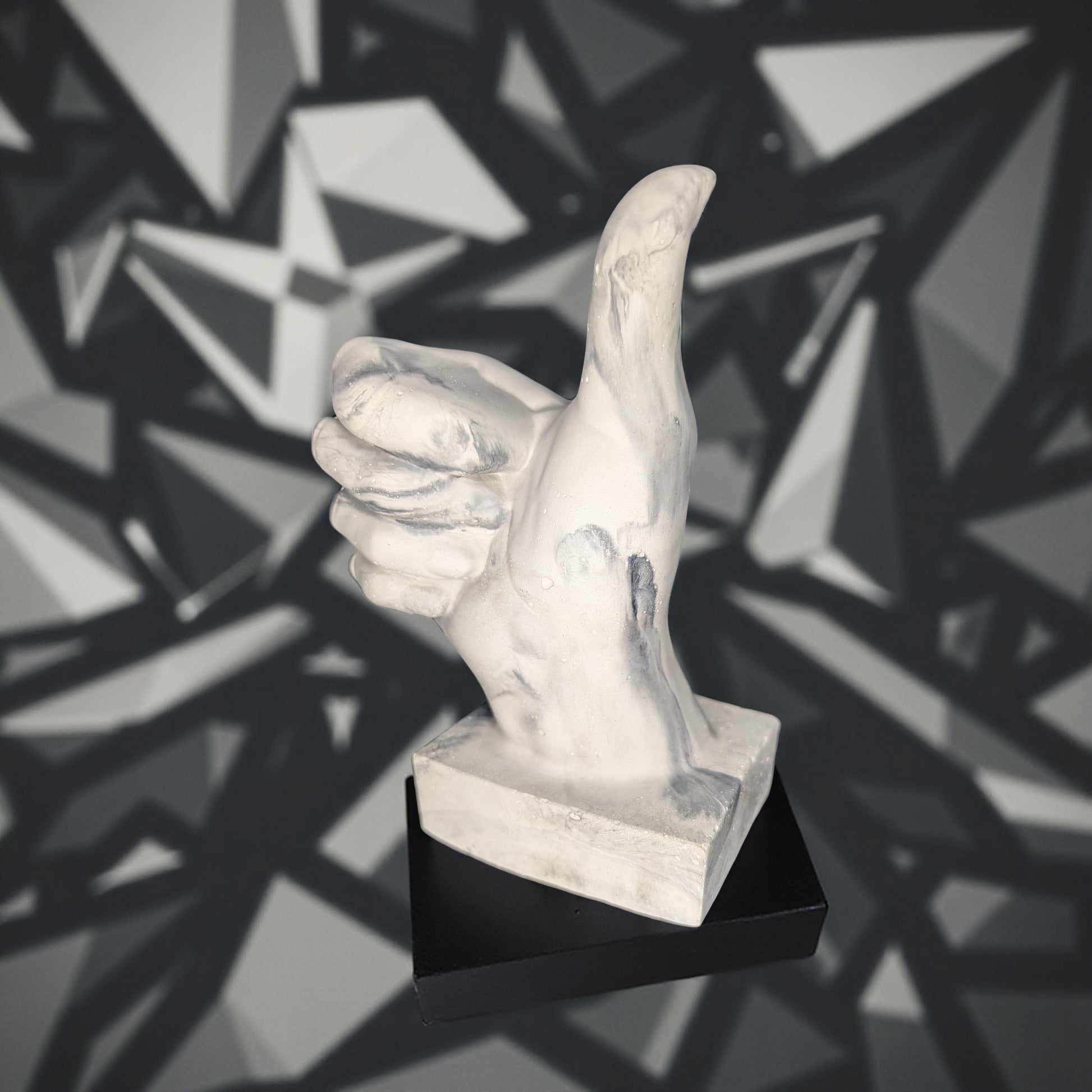 Give the ultimate sign of approval with this striking, handcrafted Thumbs Up statue. The perfect piece of modern decor for an office desk, bookshelf, or studio, this sculpture serves as a constant, stylish reminder of positivity and a job well done.